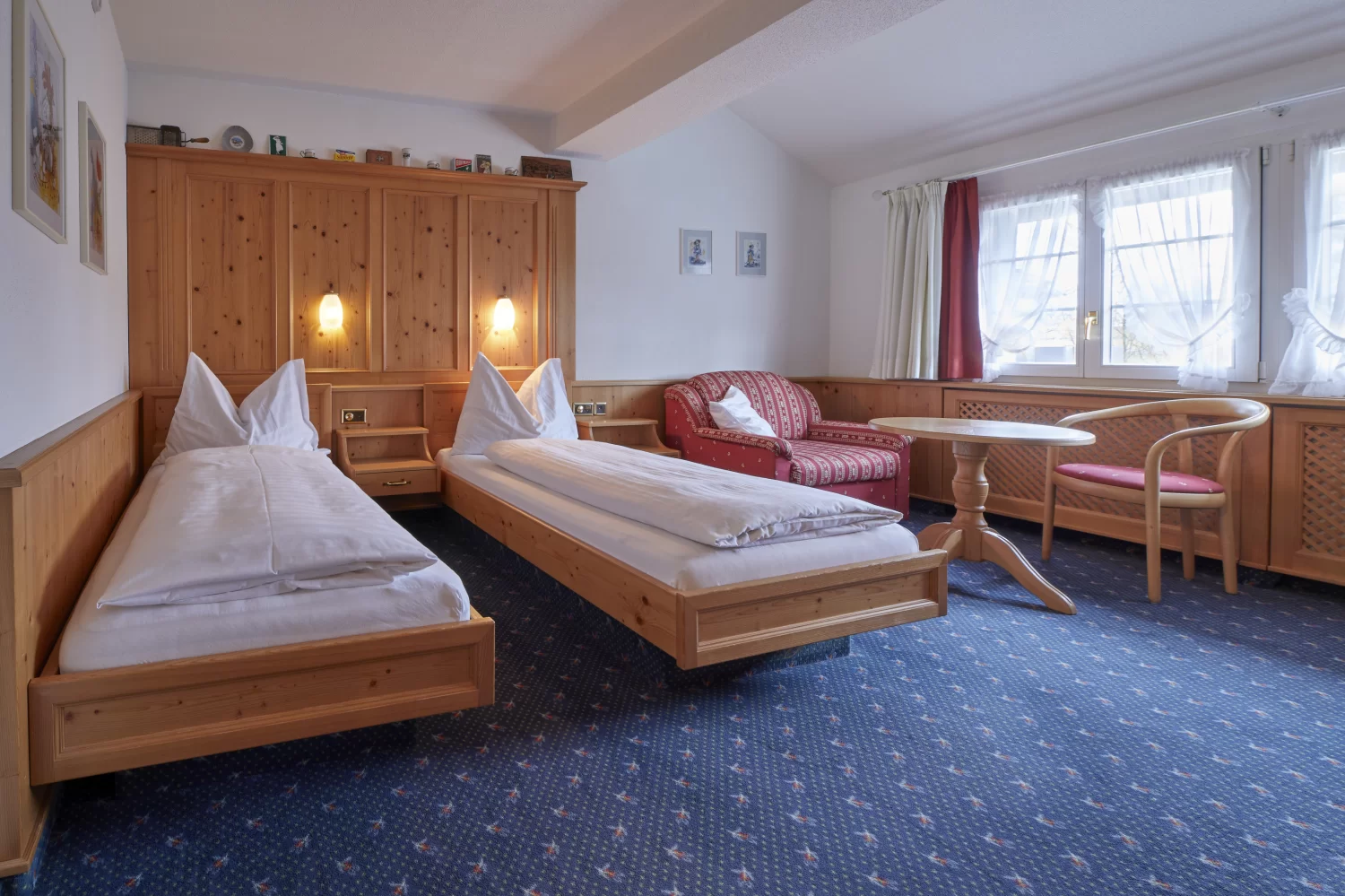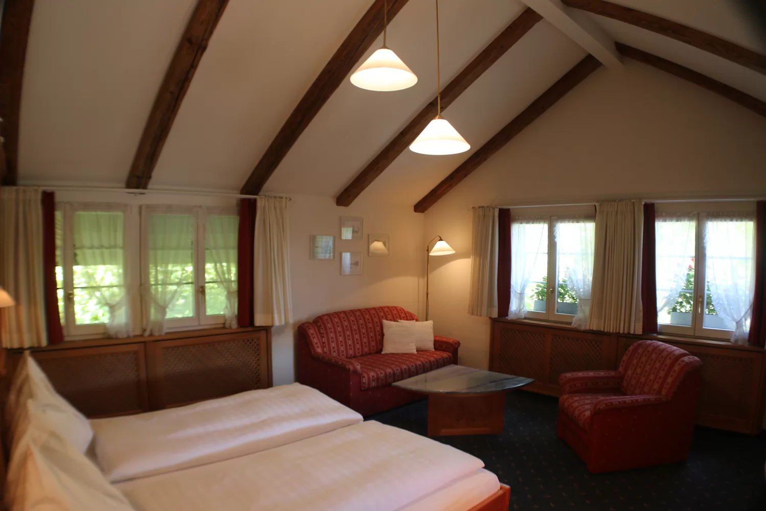 Unsere Doppelzimmer bieten einen gemütlichen Rückzugsort und keines ist, trotz desselben Stils, genau gleich wie das andere. Unsere Gäste sind es schönerweise ja auch nicht. Wir freuen uns auf Sie.